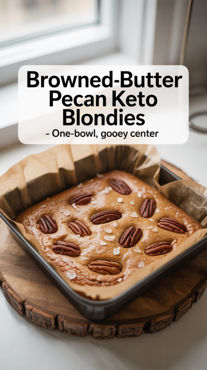 These Browned-Butter Pecan Keto Blondies deliver a chewy center, crisp edges, and irresistible nutty depth—using almond flour and a brown sugar–style sweetener. They mix up in one bowl and bake in under 25 minutes, making them the perfect last-minute low-carb treat.