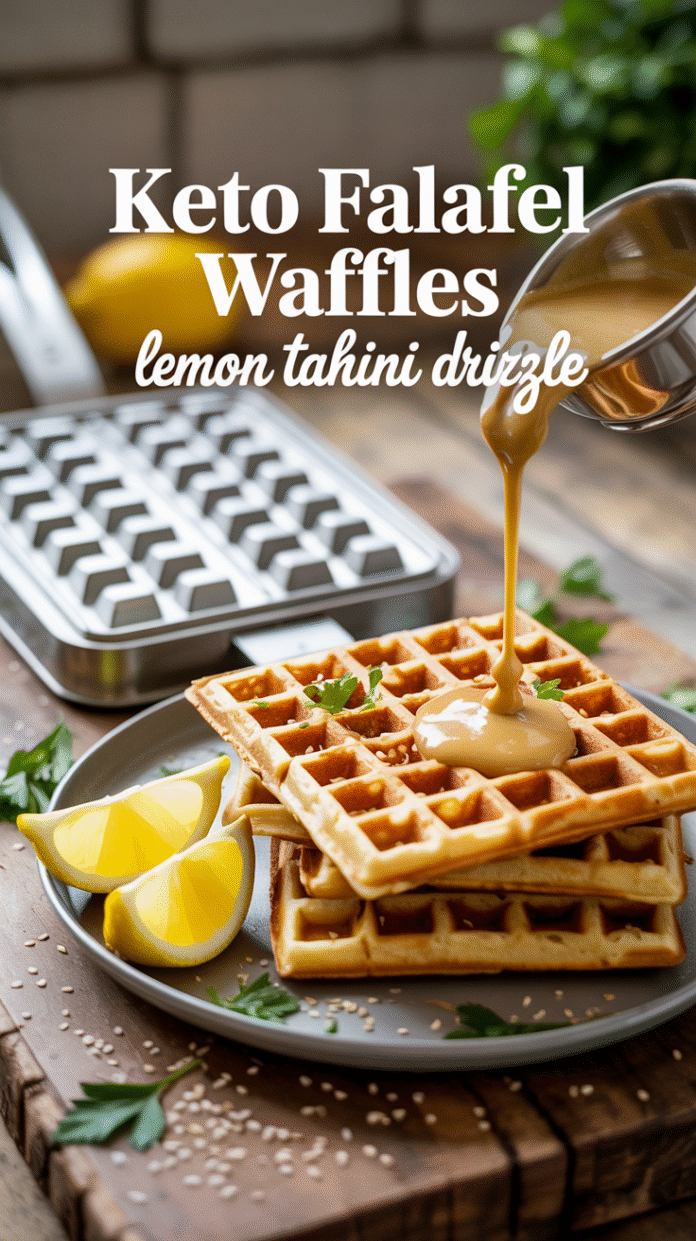 These crispy keto falafel waffles bring all the herby, garlicky falafel flavor—without the chickpeas or grains. Made with riced cauliflower, almond flour, and fresh parsley-cilantro, they cook up golden in a waffle iron and get finished with a silky lemon–tahini drizzle. They’re meal-prep friendly, gluten-free, and perfect for a satisfying low-carb lunch.