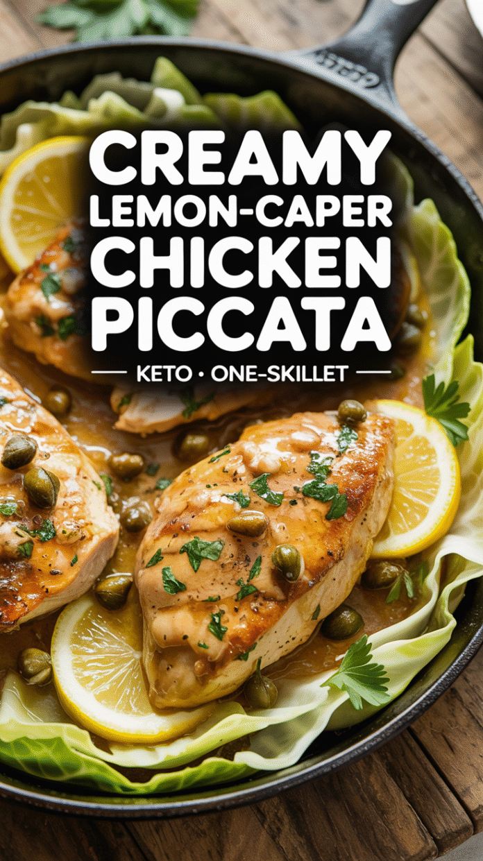 Comfort-food chicken piccata gets a low-carb glow-up in this one-skillet dinner. Golden seared chicken swims in a glossy lemon–caper butter sauce and sits over tender cabbage “noodles” for all the classic flavors—without the pasta. It’s weeknight-easy, restaurant-worthy, and ready in about 30 minutes.